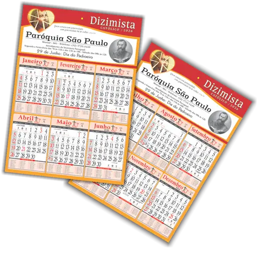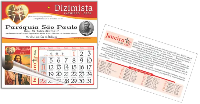Os textos que compõe a arte da folhinha, são por mim preparados com o objetivo de evangelizar, cada batizado evangelizado será um dizimista consciente e um outro evangelizador. O design e a impressão são de excelente qualidade.